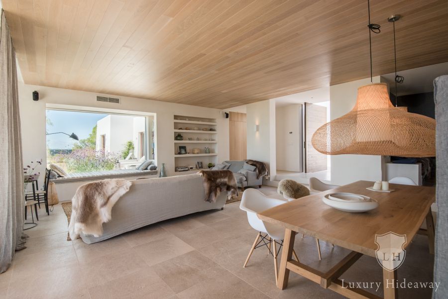 The beautiful view combined with the quiet location of the fully enclosed grounds, invites you to relax and dream. The large pool 17 x 5 m can accommodate the whole family. Despite the quiet location, you can reach Ibiza Town in about 15 minutes by car. Since the way to the property is not cemented, we recommend an SUV as a rental car.
