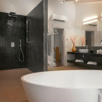 - 1 double bedroom (king-size 2 x 2 metres) with air conditioning and en-suite bathroom with dressing area, free-standing bathtub.