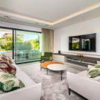 Die Villa beeindruckt mit ihrem modernen und eleganten Design, natürliche Farben und einem mediterranen Garten, der das Anwesen umschließt. Die Villa Gardenias erstreckt sich über vier Etagen, die über einen privaten Aufzug mühelos erreichbar sind. Vier geschmackvoll gestaltete En-Suite-Schlafzimmer mit individuellem Zugang zur Terrasse bieten Platz für bis zu zehn Personen. Die reichliche Nutzung rahmenloser Schiebetüren ermöglicht es den Bewohnern, einen nahtlosen Indoor-Outdoor-Lebensstil zu erleben und das sonnige und milde Wetter zu nutzen, für das Marbella bekannt ist.