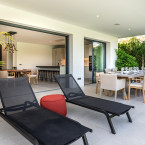 - Poolterrasse mit Sonnenliegen und Lounge Möbeln