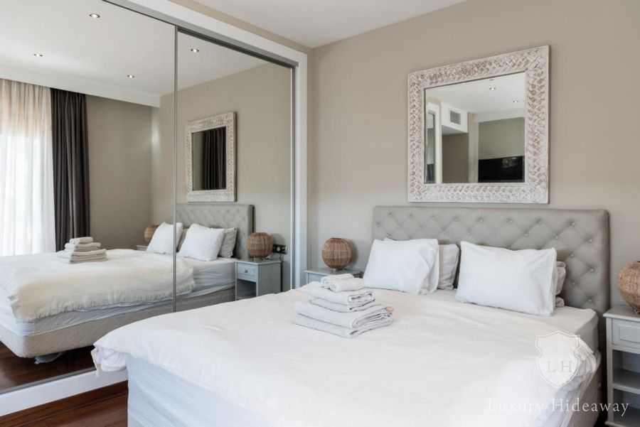 - Three additional double bedrooms: one with a double bed, one with two single beds, and a bathroom with two sinks and a bathtub.
