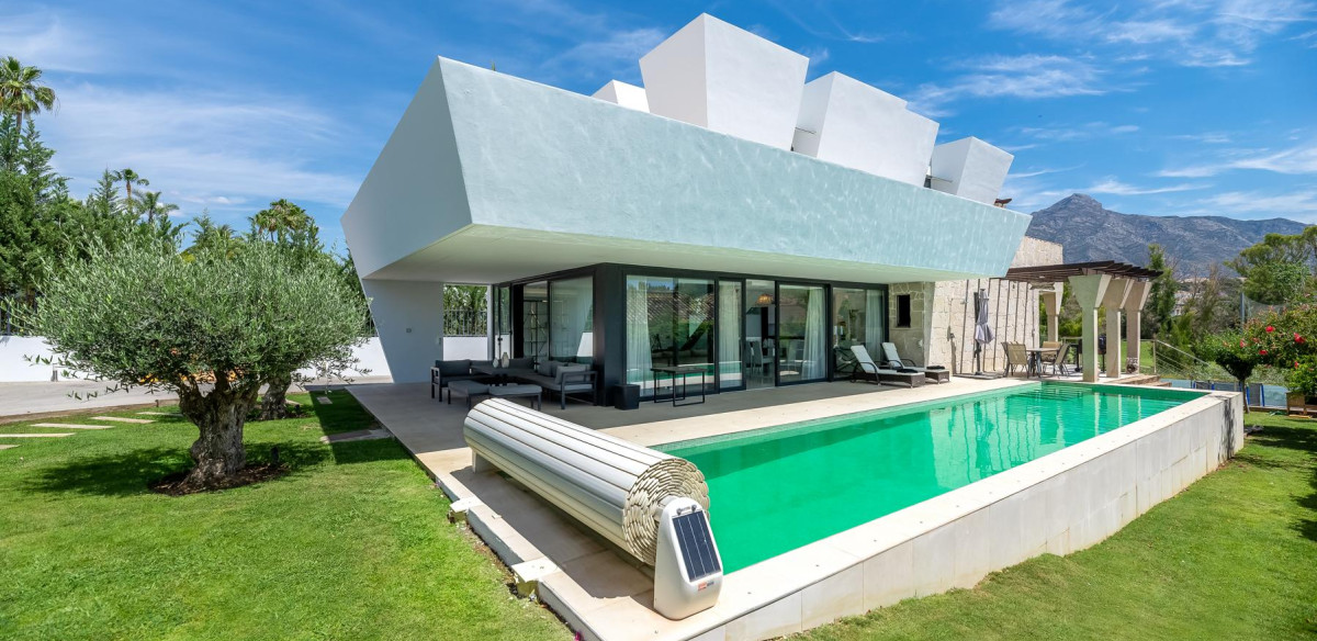 Willkommen in der luxuriösen und modernen Villa Marbella Azur - der perfekte Rückzugsort für alle, die ein unvergessliches Urlaubserlebnis suchen. Dieses prächtige Anwesen verfügt über 5 geräumige Schlafzimmer, das Hauptschlafzimmer mit eigenem Bad, sowie ein separates Personal-/Gästeapartment für zusätzlichen Komfort und Privatsphäre.