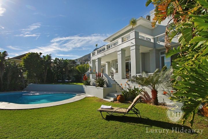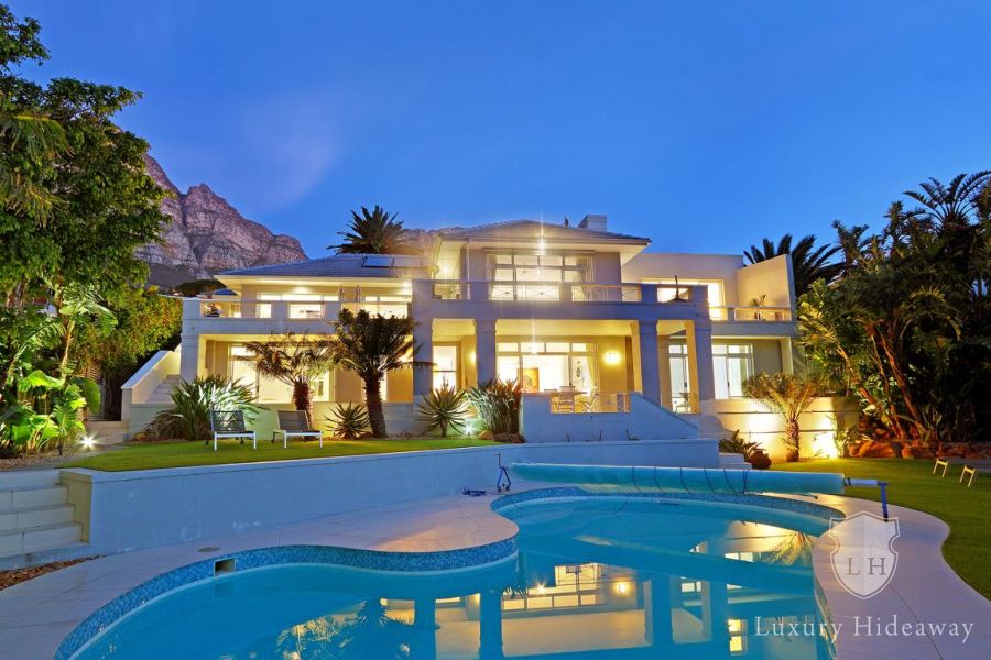 Msangasanga ist eine zweistöckige Ferienvilla mit 5 Schlafzimmern in Camps Bay mit Blick auf den Atlantischen Ozean und den Lions Head.